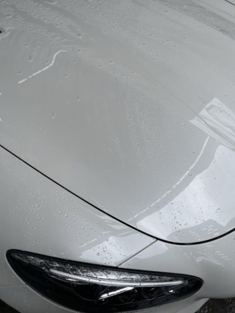 これまでの耐スリ傷性向上塗料と違い、洗車傷などが太陽の熱である程度自己修復すると言うものですが、このクリヤーに撥水性のコーティングをかけてしまうとこうなります。