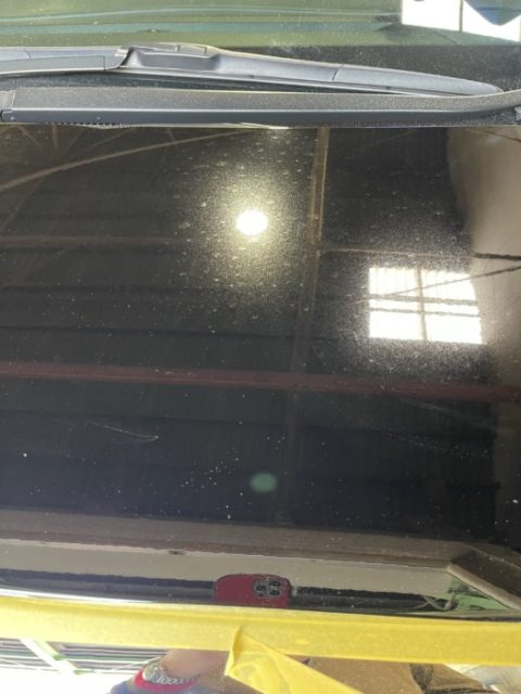 撥水性のコーティングは水滴がボディ上面に残りやすくなるので、その上に黄砂などがのり一緒に乾いて熱が入ってしまうと、この様に痕が残ってしまいます。