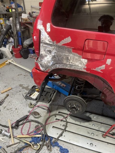 JF1N-BOXのクォーターパネルの鈑金塗装です。