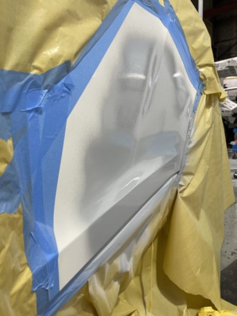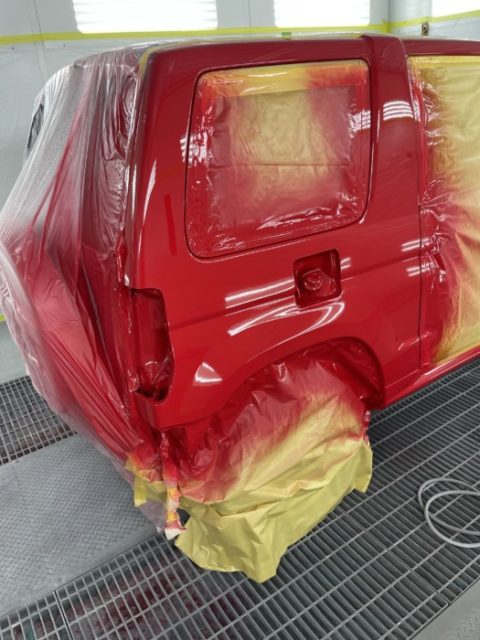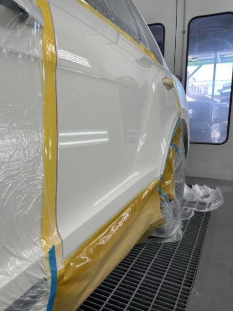 ドアがアルミパネルなので鈑金にてこずりましたが、何とか分からない位にまで修正する事が出来ました。